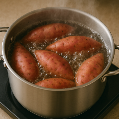 고구마가 거의 익으면 뚜껑을 열고 5분 정도 수분을 날려주세요. 이렇게 하면 고구마 삶는 법에서 자주 발생하는 '물컹함'을 피할 수 있어요.