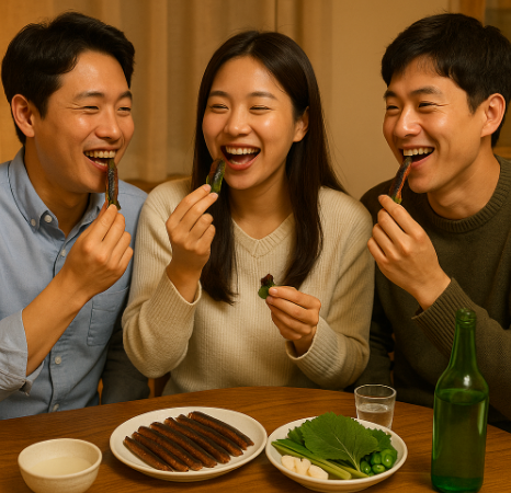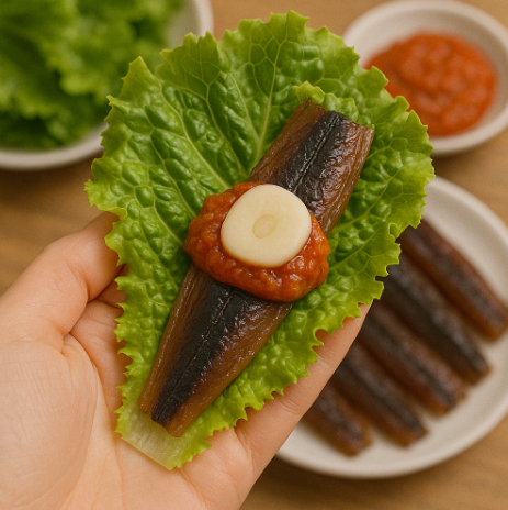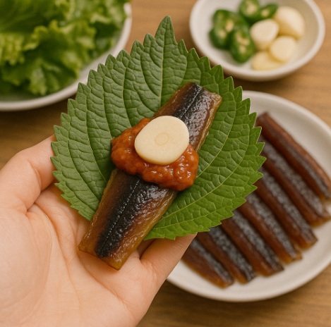 - 김에 싸 먹기: 구운 김 위에 과메기를 올리고, 마늘과 고추, 깻잎을 곁들여 초장에 살짝 찍어 먹으면 환상의 조합입니다.