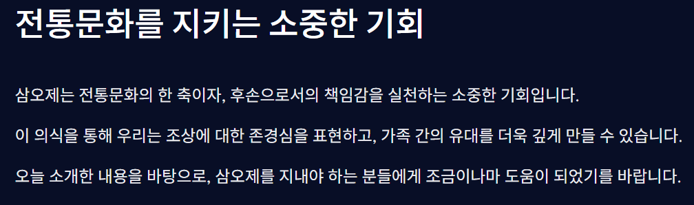 지금까지 삼오제란 무엇인지, 어떤 절차와 음식을 포함하는지를 살펴보았습니다. 삼오제는 단지 제사의 한 형태가 아니라, 고인을 향한 가족의 마지막 정성과 예의입니다. 조상과의 마지막 인사를 정갈하게 마무리하는 시간, 바로 그것이 삼오제란 존재의 이유입니다.