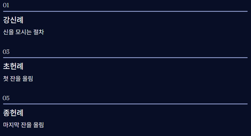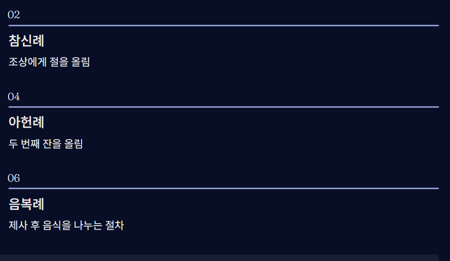 - 음복례 – 제사 후 음식을 나누는 절차