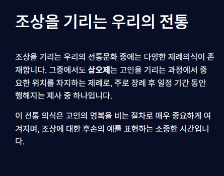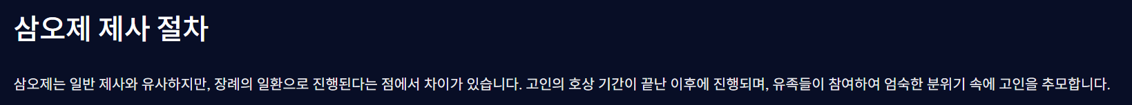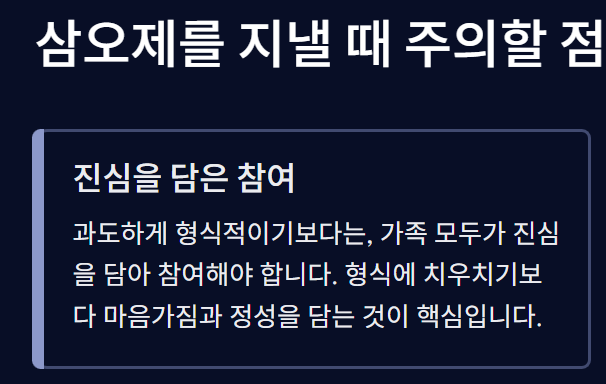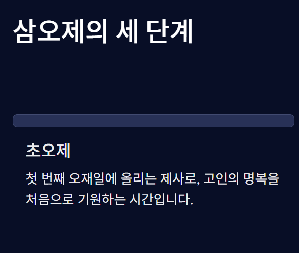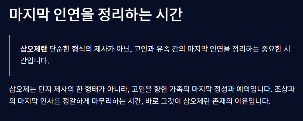 이 모든 과정에서 고인을 향한 경건한 마음가짐이 가장 중요하며, 삼오제는 그 마음을 가장 진중하게 표현하는 시간입니다.