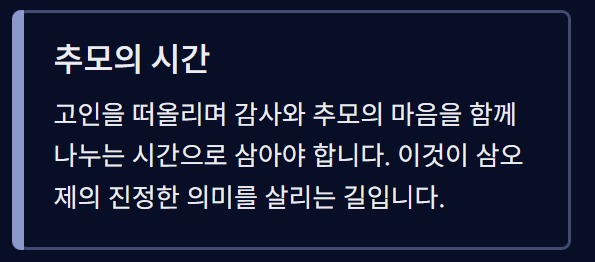 삼오제란 단순한 형식의 제사가 아닌, 고인과 유족 간의 마지막 인연을 정리하는 중요한 시간입니다. 따라서 형식에 치우치기보다는 마음가짐과 정성을 담는 것이 핵심입니다.