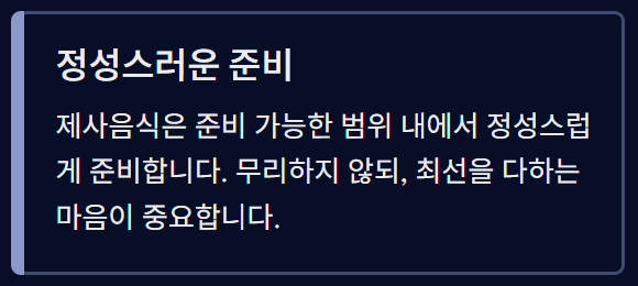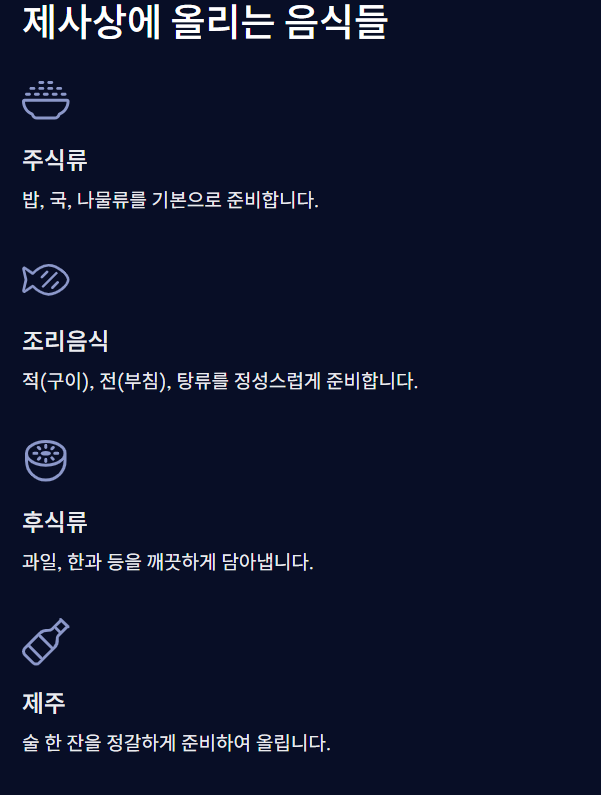- 제사음식은 준비 가능한 범위 내에서 정성스럽게 준비