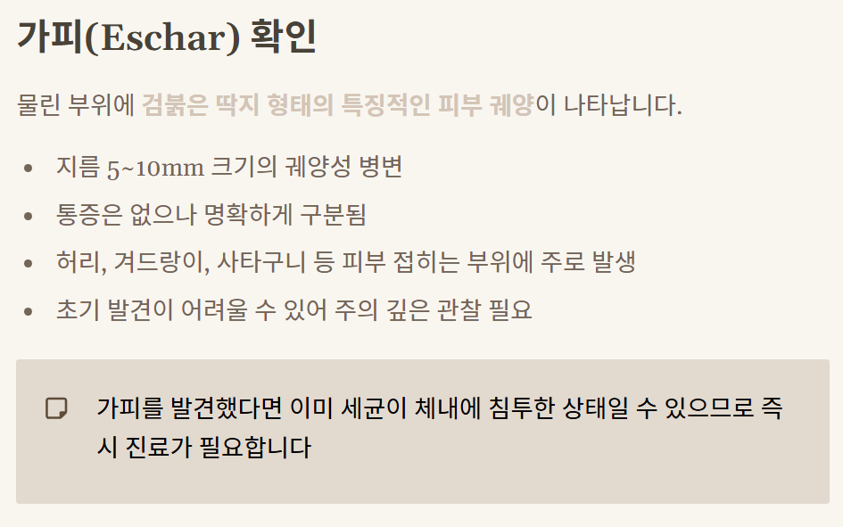 특히 야외활동 후 몸에 이상이 느껴진다면 쯔쯔가무시를 반드시 의심해야 하며, 물린자국과 치료 시기를 놓치면 위험한 합병증으로 이어질 수 있습니다.