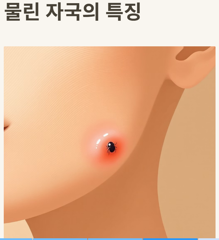 이 물린자국은 허리나 겨드랑이, 사타구니처럼 피부가 접히는 부위에 주로 생기며, 증상 초기에 발견하기 어려울 수 있습니다. 쯔쯔가무시 물린자국을 발견했다면 이미 세균이 체내에 침투한 상태일 수 있으므로 즉시 진료가 필요합니다.